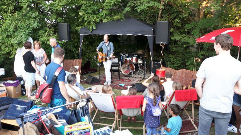 Das Konzert letzte Woche beim Nachtflohmarkt in Kaufbeuren war übrigens wunderschön! Der erste Teil um acht war noch bei stahlendem Sonnenschein (siehe unten), Teil zwei um halb elf war dann romantisch im Licht von Lampions zwischen verstaubten Schallplatten, charmantem Trödel und lässigen, alten Hüten.
